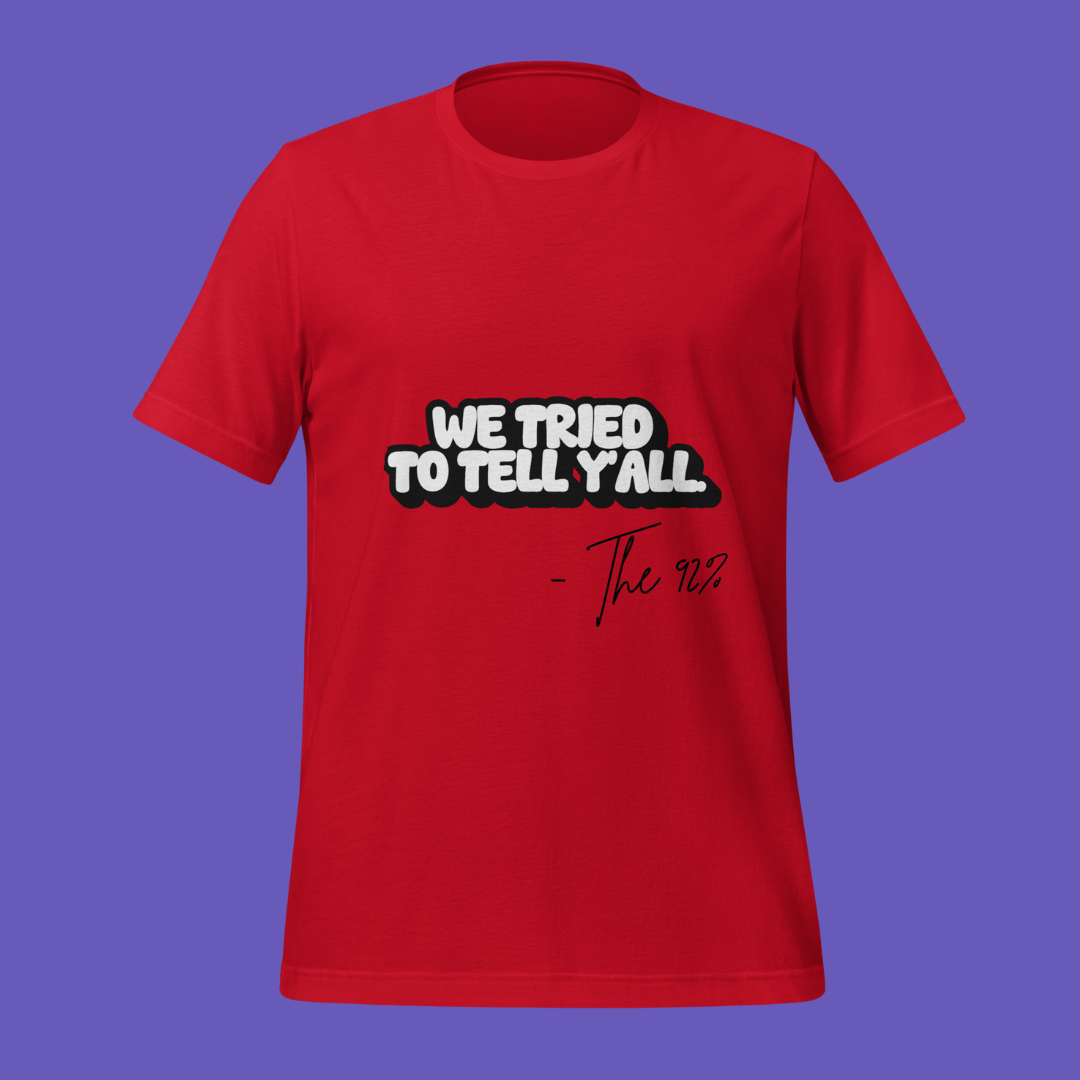 🤷🏾♀️ We Tried to Tell Y’all – The 92% | T-Shirt
